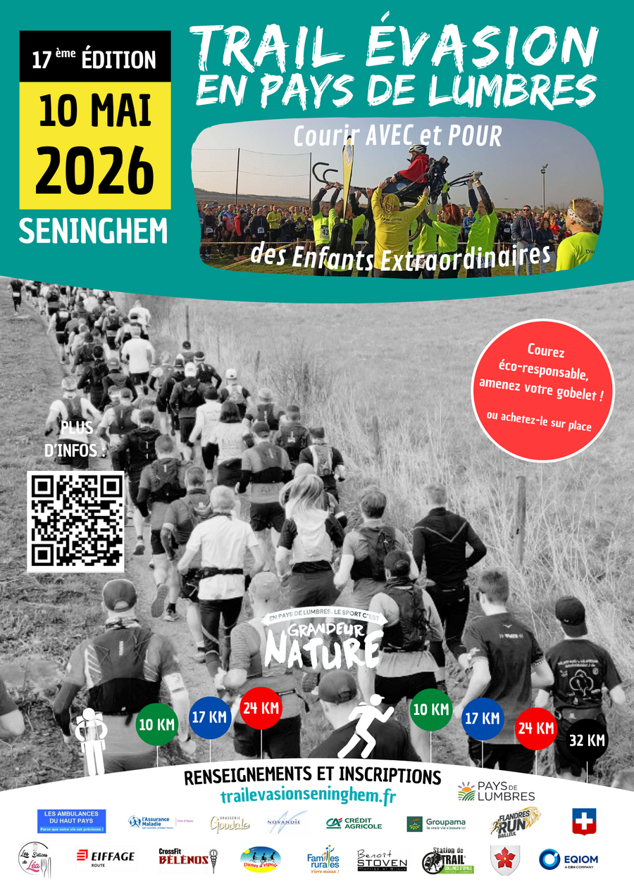 Dimanche 10 Mai 2026 17ème Edition du TRAIL EVASION en Pays de Lumbres Courir AVEC et POUR des Enfants Extraordinaires!
